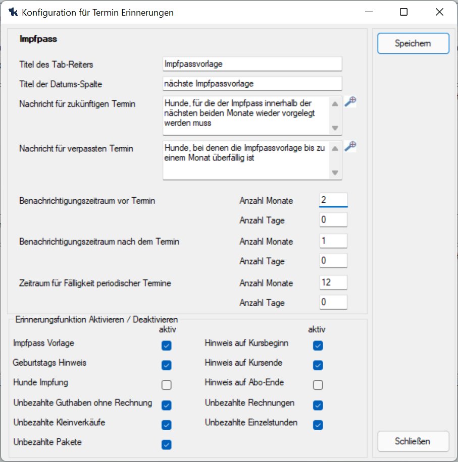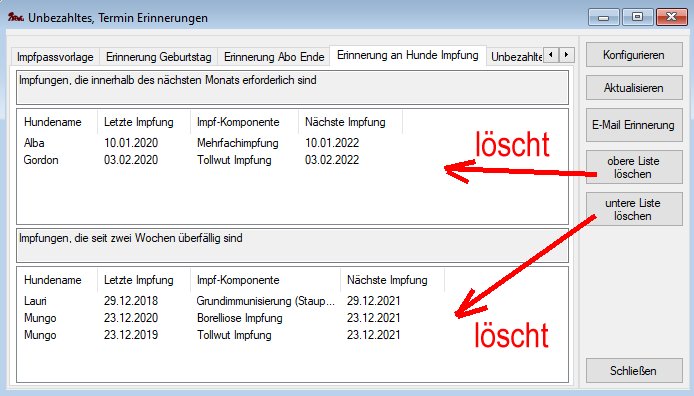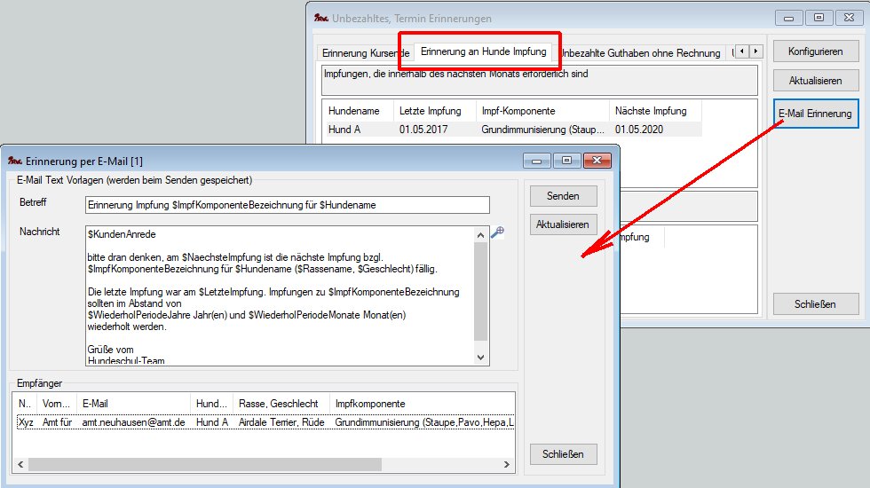 An die Termine aus der Auswertung für Impfpass Vorlage oder Hunde Impfung kann man Kunden per E-Mail erinnern.