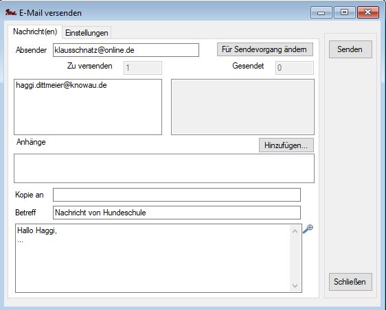 E-Mail an Trainer: öffnet die Sendemaske für eine E-Mail ad den Trainer. Die E-Mail Adresse des Trainers ist vorbelegt. Der Text der E-Mail muss noch erfasst werden: