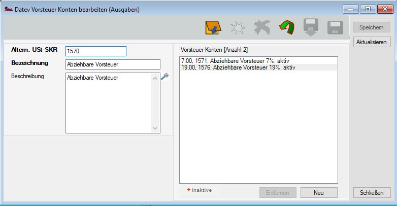 - Kassenbuch->Datev Umsatzsteuerkonten