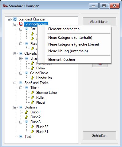 dienen lediglich der Strukturierung. An oberster Stelle steht immer das Kapitel Standard Übungen, das man umbenennen aber nicht löschen kann. Die Einteilung unterhalb ist frei definierbar.
