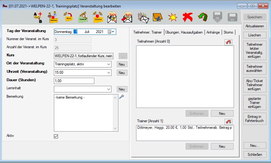 - Zur Erfassung von Teilnehmern oder Trainern siehe auch bei Teilnehmer hinzufügen