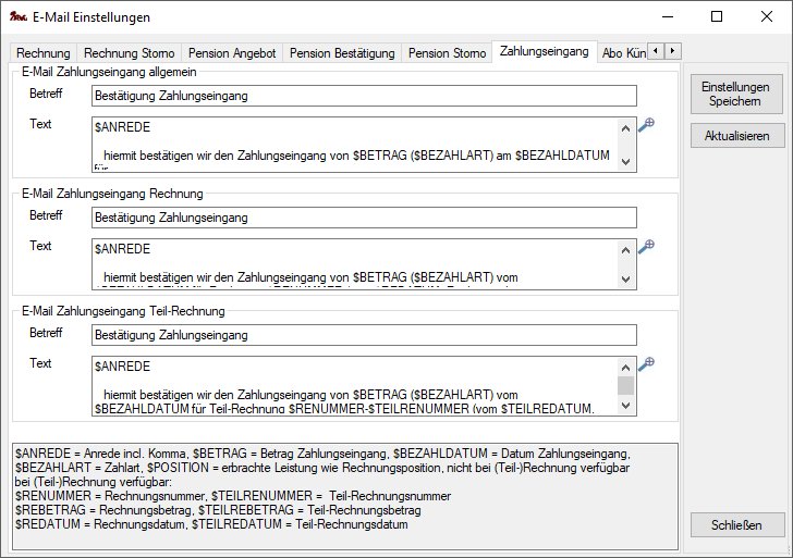 Wird beim Versenden der Bestätigung eines Zahlungseingangs an den Kunden verwendet
