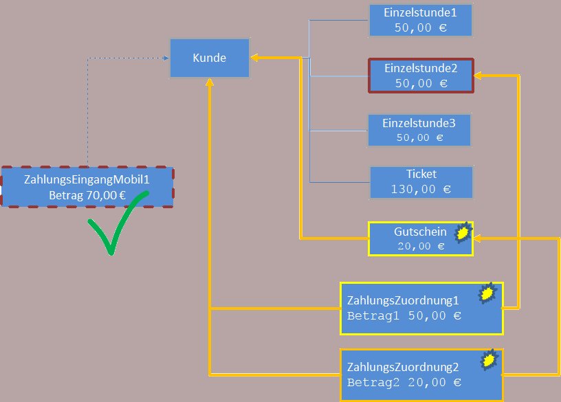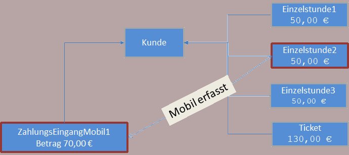 Die Situation nach der Zuordnung des mobilen Zahlungseingangs von 70,00 € zur Einzelstunde ist daher: